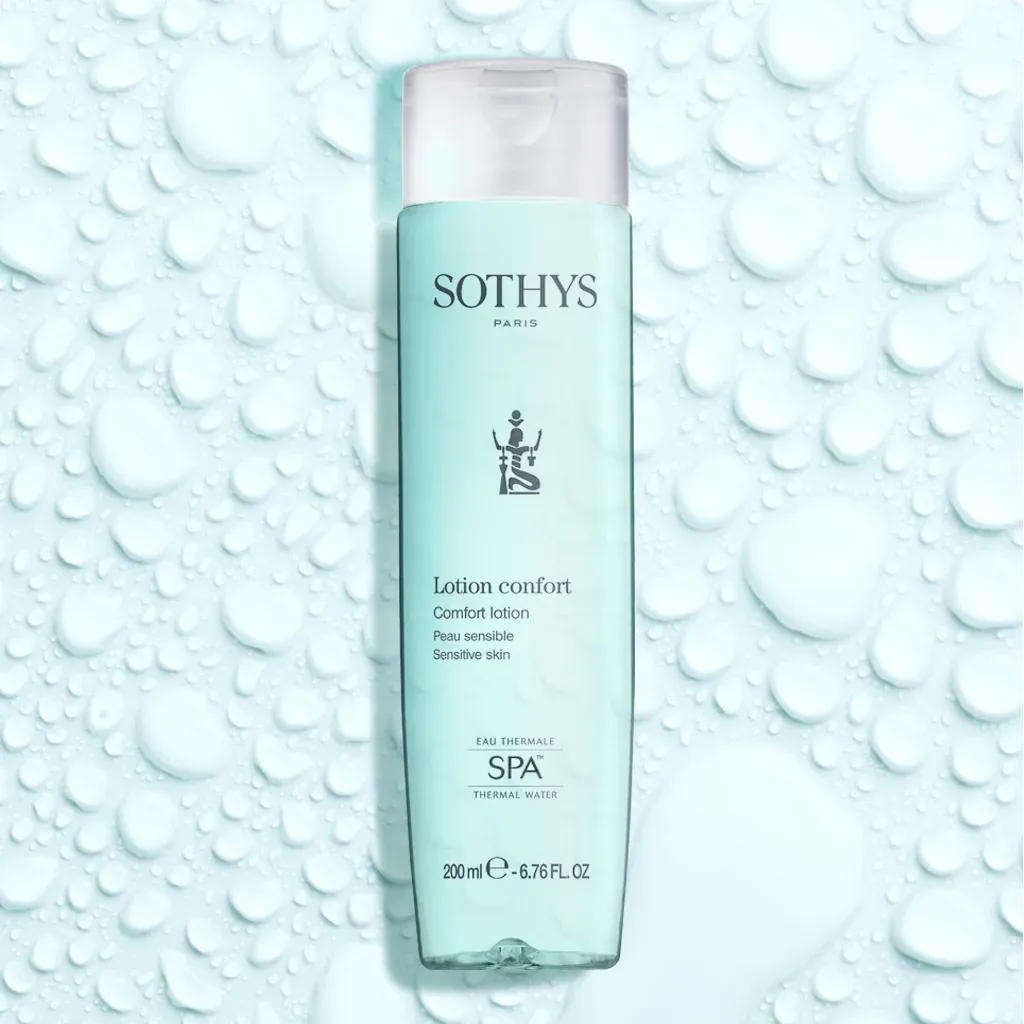 Rejuvenate your skin with Sothys Comfort Lotion. Enriched with Spa Thermal Water, it gently removes impurities, balances, and refreshes dry and sensitive skin — perfect for a soothing, radiant complexion.